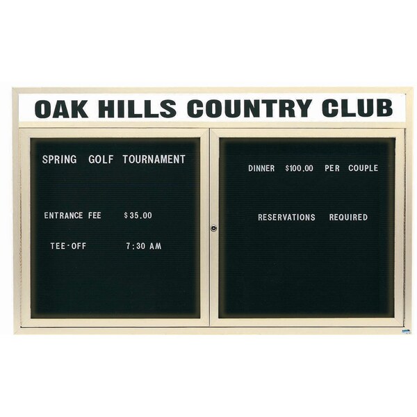 Illuminated Enclosed Aluminum Directory Boards are made of custom extruded parts engineered to provide accurate, durable and handsome cabinets. All corners are neatly mitered and assembled with Heavy duty reinforcements and fasteners. The black felt covered grooved rear panel designed to accommodate changeable letters with tabs spaced on 1/4" centers. Supplied with a blank header panel, ready for your custom vinyl lettering. Lettering is not included and must be applied by the customer. Ivory Powder Coated Finish Size 36"Hx60"W 2 Doors