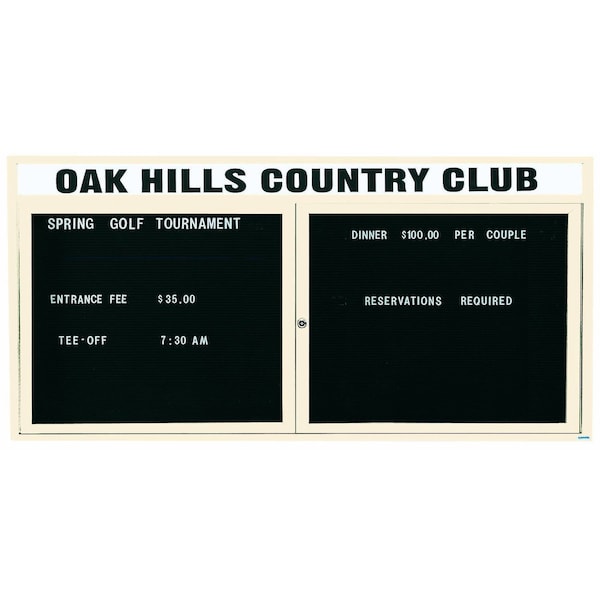 Illuminated Enclosed Aluminum Directory Boards are made of custom extruded parts engineered to provide accurate, durable and handsome cabinets. All corners are neatly mitered and assembled with Heavy duty reinforcements and fasteners. The black felt covered grooved rear panel designed to accommodate changeable letters with tabs spaced on 1/4" centers. Supplied with a blank header panel, ready for your custom vinyl lettering. Lettering is not included and must be applied by the customer. Ivory Powder Coated Finish Size 36"Hx72"W 2 Doors