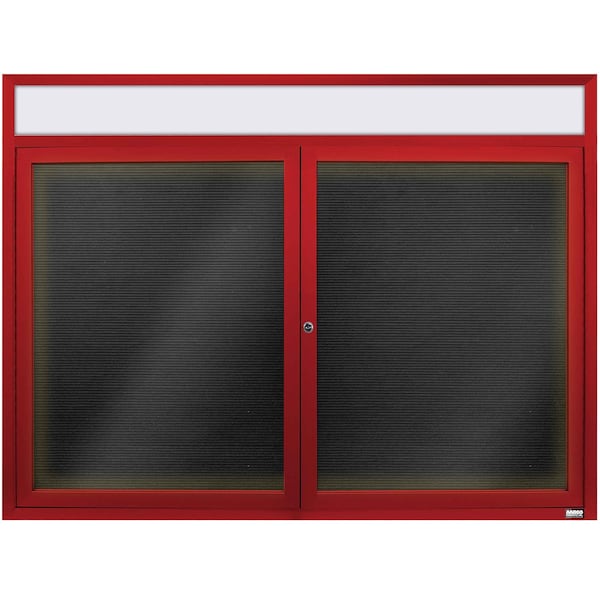 Illuminated Enclosed Aluminum Directory Boards are made of custom extruded parts engineered to provide accurate, durable and handsome cabinets. All corners are neatly mitered and assembled with Heavy duty reinforcements and fasteners. The black felt covered grooved rear panel designed to accommodate changeable letters with tabs spaced on 1/4" centers. Supplied with a blank header panel, ready for your custom vinyl lettering. Lettering is not included and must be applied by the customer. Red Powder Coated Finish Size 36"Hx48"W 2 Doors