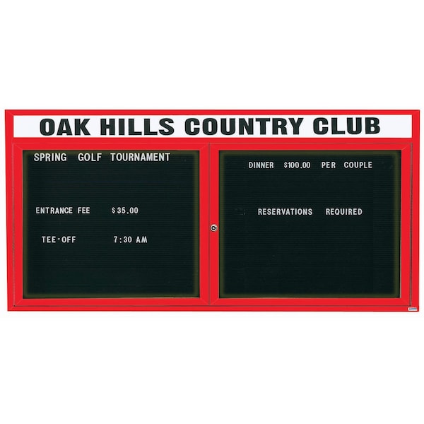 Illuminated Enclosed Aluminum Directory Boards are made of custom extruded parts engineered to provide accurate, durable and handsome cabinets. All corners are neatly mitered and assembled with Heavy duty reinforcements and fasteners. The black felt covered grooved rear panel designed to accommodate changeable letters with tabs spaced on 1/4" centers. Supplied with a blank header panel, ready for your custom vinyl lettering. Lettering is not included and must be applied by the customer. Red Powder Coated Finish Size 36"Hx72"W 2 Doors