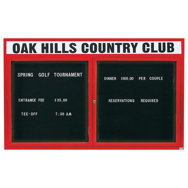 Illuminated Enclosed Aluminum Directory Boards are made of custom extruded parts engineered to provide accurate, durable and handsome cabinets. All corners are neatly mitered and assembled with Heavy duty reinforcements and fasteners. The black felt covered grooved rear panel designed to accommodate changeable letters with tabs spaced on 1/4" centers. Supplied with a blank header panel, ready for your custom vinyl lettering. Lettering is not included and must be applied by the customer. Red Powder Coated Finish Size 48"Hx72"W 2 Doors