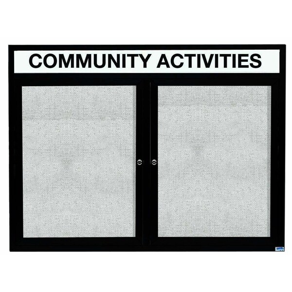 Illuminated Outdoor Enclosed Aluminum Bulletin Boards are made of custom extruded parts engineered to provide accurate, durable and handsome cabinets. All corners are neatly mitered and assembled with Heavy duty reinforcements and fasteners. Units are weatherized. Back panel is an attractive standard vinyl. Supplied with a blank header panel, ready for your custom vinyl lettering. Lettering is not included and must be applied by the customer. Finish Bronze Satin Anodized Size 36"Hx48"W 2 Doors