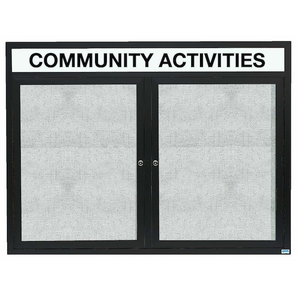 Illuminated Outdoor Enclosed Aluminum Bulletin Boards are made of custom extruded parts engineered to provide accurate, durable and handsome cabinets. All corners are neatly mitered and assembled with Heavy duty reinforcements and fasteners. Units are weatherized. Back panel is an attractive standard vinyl. Supplied with a blank header panel, ready for your custom vinyl lettering. Lettering is not included and must be applied by the customer. Finish Bronze Satin Anodized Size 48"Hx60"W 2 Doors