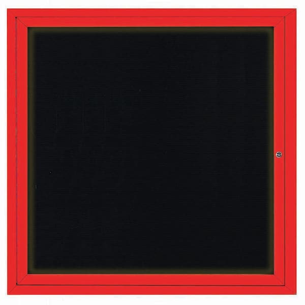 Illuminated Outdoor Enclosed Aluminum Directory Boards are made of custom extruded parts engineered to provide accurate, durable and handsome cabinets. All corners are neatly mitered and assembled with Heavy duty reinforcements and fasteners. The black vinyl covered grooved rear panel designed to accommodate changeable letters with tabs spaced on 1/4" centers. Red Powder Coated Finish Size 36"Hx36"W 1 Door