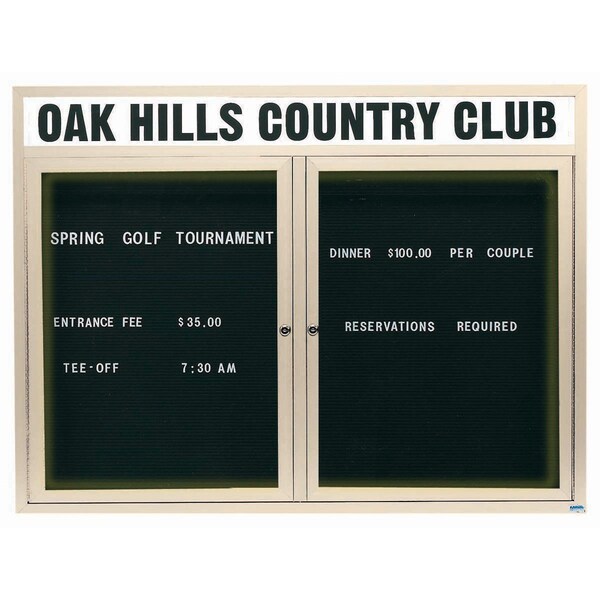 Illuminated Outdoor Enclosed Aluminum Directory Boards are made of custom extruded parts engineered to provide accurate, durable and handsome cabinets. All corners are neatly mitered and assembled with Heavy duty reinforcements and fasteners. The black vinyl covered grooved rear panel designed to accommodate changeable letters with tabs spaced on 1/4" centers. Supplied with a blank header panel, ready for your custom vinyl lettering. Lettering is not included and must be applied by the customer. Ivory Powder Coated Finish Size 48"Hx60"W 2 Doors