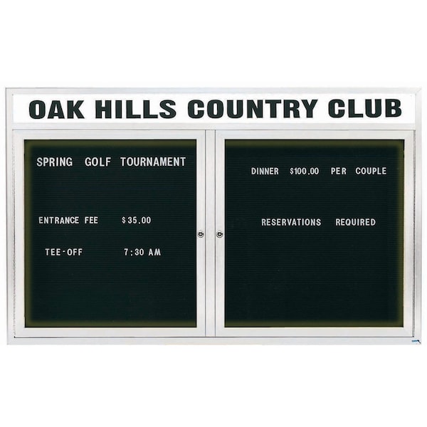 Illuminated Outdoor Enclosed Aluminum Directory Boards are made of custom extruded parts engineered to provide accurate, durable and handsome cabinets. All corners are neatly mitered and assembled with Heavy duty reinforcements and fasteners. The black vinyl covered grooved rear panel designed to accommodate changeable letters with tabs spaced on 1/4" centers. Supplied with a blank header panel, ready for your custom vinyl lettering. Lettering is not included and must be applied by the customer. White Powder Coated Finish Size 36"Hx60"W 2 Doors
