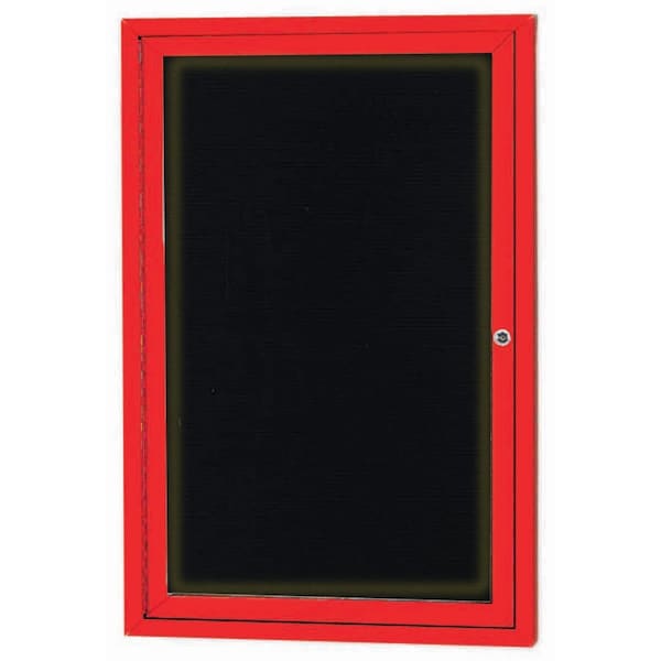 Illuminated Outdoor Enclosed Aluminum Directory Boards are made of custom extruded parts engineered to provide accurate, durable and handsome cabinets. All corners are neatly mitered and assembled with Heavy duty reinforcements and fasteners. The black vinyl covered grooved rear panel designed to accommodate changeable letters with tabs spaced on 1/4" centers. Red Powder Coated Finish Size 36"Hx24"W 1 Door