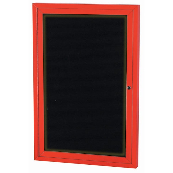 Illuminated Outdoor Enclosed Aluminum Directory Boards are made of custom extruded parts engineered to provide accurate, durable and handsome cabinets. All corners are neatly mitered and assembled with Heavy duty reinforcements and fasteners. The black vinyl covered grooved rear panel designed to accommodate changeable letters with tabs spaced on 1/4" centers. Red Powder Coated Finish Size 48"Hx36"W 1 Door
