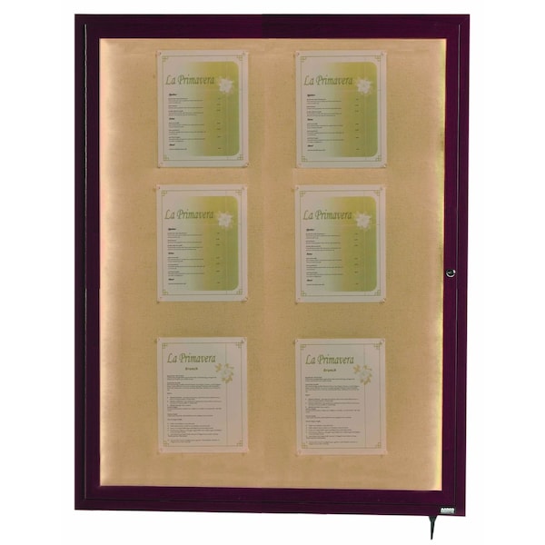 Indoor/Outdoor display case with a tackable back panel, features our Cherry Wood-Look Powder Coated finish. Enjoy the rich natural appearance of wood combined with the enduring qualities of aluminum. Unit is equipped with lockable doors and concealed mounting brackets. LED Lighted Cabinet includes Power Cord which plugs into standard electric outlets eliminating the need for "Hard Wiring". Size: 48"Hx36"W 1 door unit.