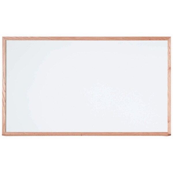 General Purpose Commercial Series White Melamine Markerboard. The Durable Heat Cured Surface on Tempered Hardboard creates a Smooth Surface which Permits Clear Ink Marks and has excellent erasing qualities. Board is White Melamine with a Solid Red Oak Wood Frame with a high gloss finish. Features a Full Length Marker Tray and is Equipped with Factory Mounted Hangers. Size 36"Hx60"W