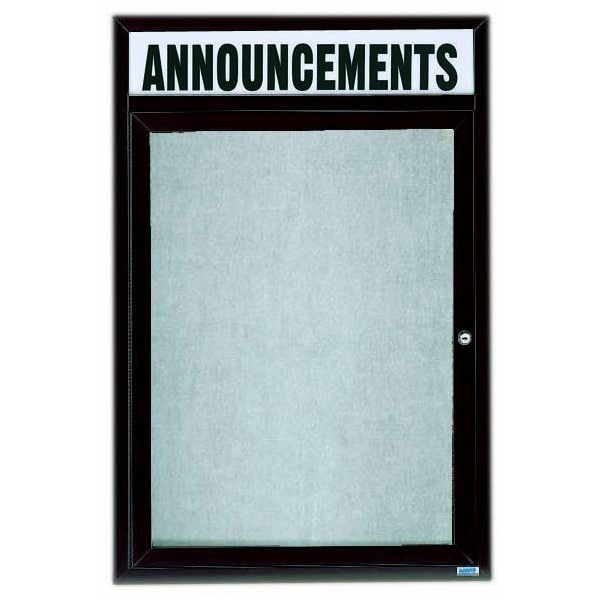 Outdoor Enclosed Bulletin Board w/ Al Frame Header, Bronze Anodized, 24''Hx18''W