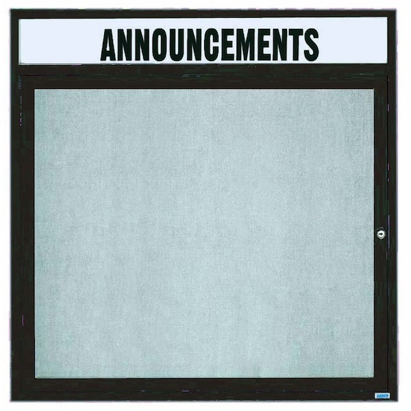 Outdoor Enclosed Aluminum Bulletin Boards are made of custom extruded parts engineered to provide accurate, durable and handsome cabinets. All corners are neatly mitered and assembled with Heavy duty reinforcements and fasteners. Units are weatherized. Back panel is an attractive standard vinyl. Supplied with a blank header panel, ready for your custom vinyl lettering. Lettering is not included and must be applied by the customer. Finish Bronze Satin Anodized Size 36"Hx36"W 1 Door