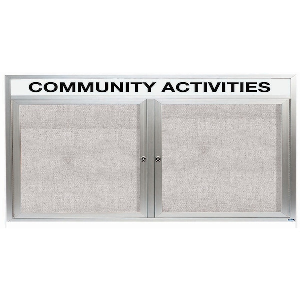 Outdoor Enclosed Aluminum Bulletin Boards are made of custom extruded parts engineered to provide accurate, durable and handsome cabinets. All corners are neatly mitered and assembled with Heavy duty reinforcements and fasteners. Units are weatherized. Back panel is an attractive standard vinyl. Supplied with a blank header panel, ready for your custom vinyl lettering. Lettering is not included and must be applied by the customer. Finish Clear Satin Anodized Size 36"Hx72"W 2 Doors
