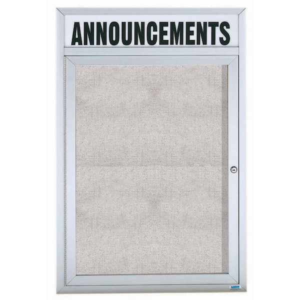 Outdoor Enclosed Bulletin Board w/ Al Frame Header, Clear Satin Anodized Finish, Neutral 48''Hx36''W