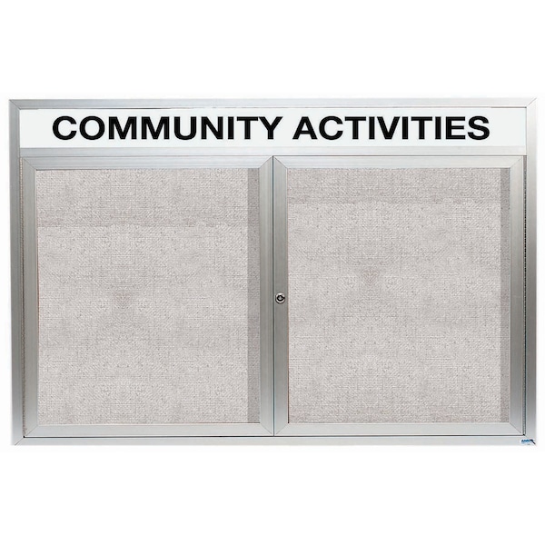 Outdoor Enclosed Aluminum Bulletin Boards are made of custom extruded parts engineered to provide accurate, durable and handsome cabinets. All corners are neatly mitered and assembled with Heavy duty reinforcements and fasteners. Units are weatherized. Back panel is an attractive standard vinyl. Supplied with a blank header panel, ready for your custom vinyl lettering. Lettering is not included and must be applied by the customer. Finish Clear Satin Anodized Size 48"Hx72"W 2 Doors