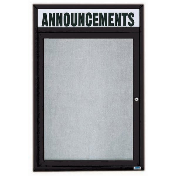 Outdoor Enclosed Bulletin Board w/ Al Frame Header, Powder Coated Black, 36''Hx24''W