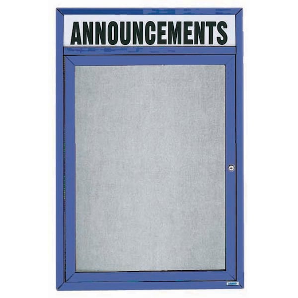 Outdoor Enclosed Bulletin Board w/ Al Frame Header, Powder Coated Blue, 36''Hx24''W