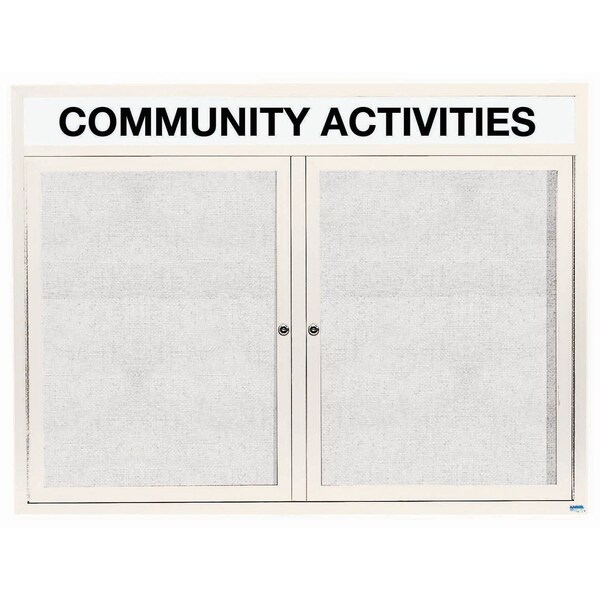 Outdoor Enclosed Aluminum Bulletin Boards are made of custom extruded parts engineered to provide accurate, durable and handsome cabinets. All corners are neatly mitered and assembled with Heavy duty reinforcements and fasteners. Units are weatherized. Back panel is an attractive standard vinyl. Supplied with a blank header panel, ready for your custom vinyl lettering. Lettering is not included and must be applied by the customer. White Powder Coated Finish Size 48"Hx60"W 2 Doors