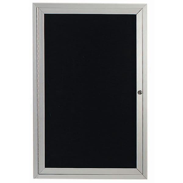 Outdoor Enclosed Aluminum Directory Boards are made of custom extruded parts engineered to provide accurate, durable and handsome cabinets. All corners are neatly mitered and assembled with Heavy duty reinforcements and fasteners. The black vinyl covered grooved rear panel designed to accommodate changeable letters with tabs spaced on 1/4" centers. Finish Clear Satin Anodized Size 36"Hx24"W 1 Door
