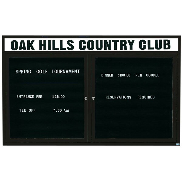 Outdoor Enclosed Aluminum Directory Boards are made of custom extruded parts engineered to provide accurate, durable and handsome cabinets. All corners are neatly mitered and assembled with Heavy duty reinforcements and fasteners. The black vinyl covered grooved rear panel designed to accommodate changeable letters with tabs spaced on 1/4" centers. Supplied with a blank header panel, ready for your custom vinyl lettering. Lettering is not included and must be applied by the customer. Finish Bronze Satin Anodized Size 48"Hx72"W 2 Doors