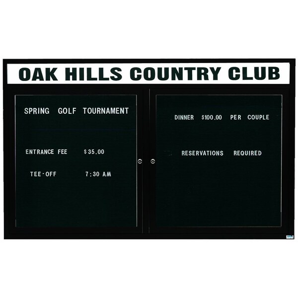 Outdoor Enclosed Aluminum Directory Boards are made of custom extruded parts engineered to provide accurate, durable and handsome cabinets. All corners are neatly mitered and assembled with Heavy duty reinforcements and fasteners. The black vinyl covered grooved rear panel designed to accommodate changeable letters with tabs spaced on 1/4" centers. Supplied with a blank header panel, ready for your custom vinyl lettering. Lettering is not included and must be applied by the customer. Black Powder Coated Finish Size 36"Hx60"W 2 Doors