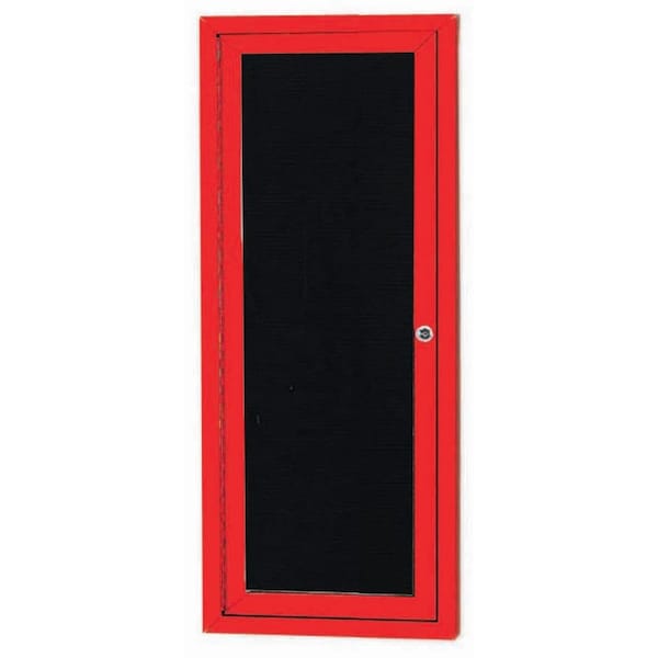 Outdoor Enclosed Aluminum Directory Boards are made of custom extruded parts engineered to provide accurate, durable and handsome cabinets. All corners are neatly mitered and assembled with Heavy duty reinforcements and fasteners. The black vinyl covered grooved rear panel designed to accommodate changeable letters with tabs spaced on 1/4" centers. Red Powder Coated Finish Size 36"Hx12"W 1 Door