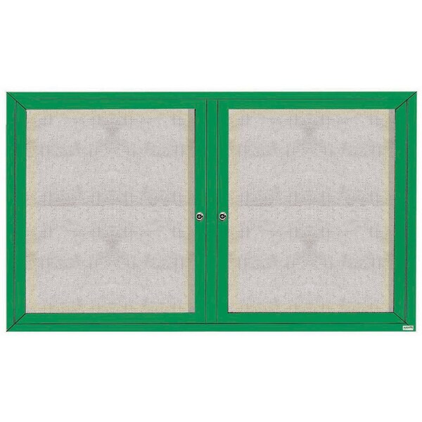 Illuminated Outdoor Enclosed Aluminum Bulletin Boards are made of custom extruded parts engineered to provide accurate, durable and handsome cabinets. All corners are neatly mitered and assembled with Heavy duty reinforcements and fasteners. Units are weatherized. Back panel is an attractive standard vinyl. Green Powder Coated Finish Size 36"Hx60"W 2 Doors