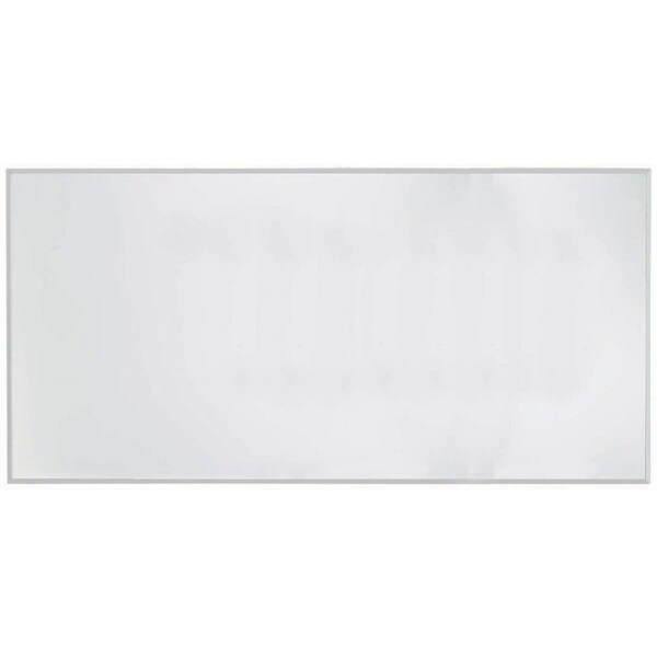 Overboard surface is a high gloss v3 porcelain on steel markerboard or chalkboard with 1/4" tempered hardboard core and 0.005 foil moisture seal. Frame is satin anodized aluminum. Size 48"H x 96"W.