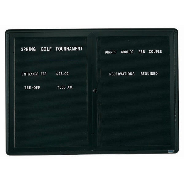 Enclosed Directory Boards with a Sleek Radius Design is perfect for a contemporary interior. Frames are fashioned of extruded Aluminum with an attractive powder coated finish. The black felt covered grooved rear panel designed to accommodate changeable letters with tabs spaced on 1/4" centers Frame/Fabric: Burgundy/Black Size: 36"Hx48"W 2 Doors