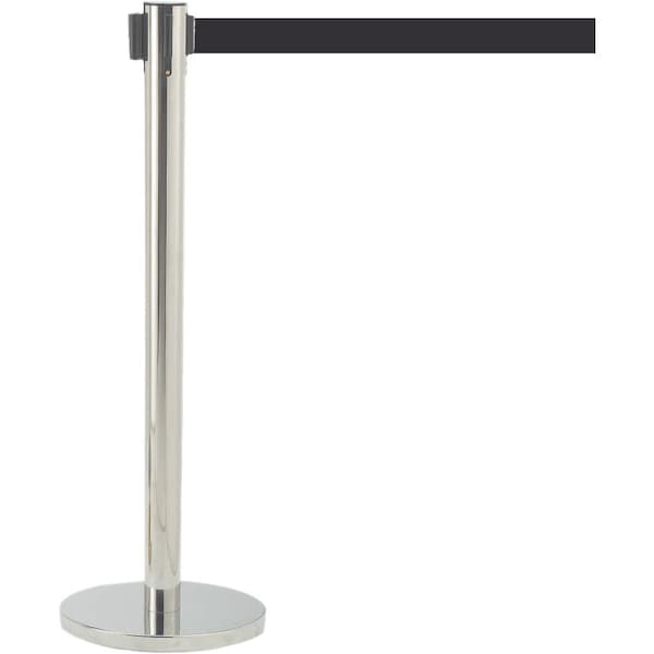 Retractable Belt Barrier, Satin Finish/Black Belt, 7 ft Length, Satin