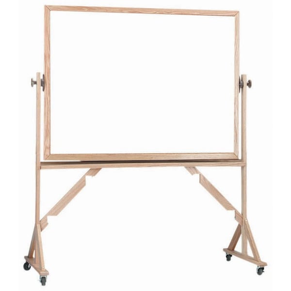 Reversible Freestanding Melamine White Marker Board w/ a Red Oak Frame, Board Size 36''Hx48''W