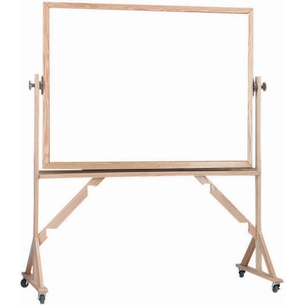 Reversible Freestanding White Porcelain Marker Board w/ a Red Oak Frame, Board Size 36''Hx48''W
