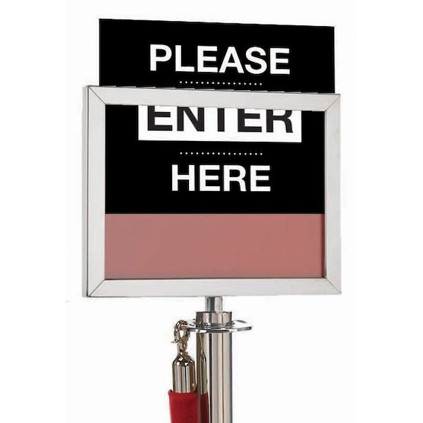 Form-A-Line Sign frames are easy to use. The top loading frame allows for simple and frequent sign or image changes, making them perfect for retail environments, real estate offices, loan closings and more. The sign frame holds printed media up to 3/8" thick and has double sided capability. To be used with Aarco Proucts LC-7 Rope Crowd Control Post. Color Chrome Size 8-5/8"Hx11 1/8"W