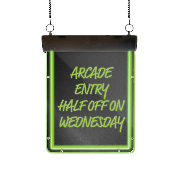 The Ultra Lite Lighted Write-On Markerboard. Writing lights up and changes with light color, switch from solid colors or alternate them. Unit includes power supply, hanging hardware and one marking pen.