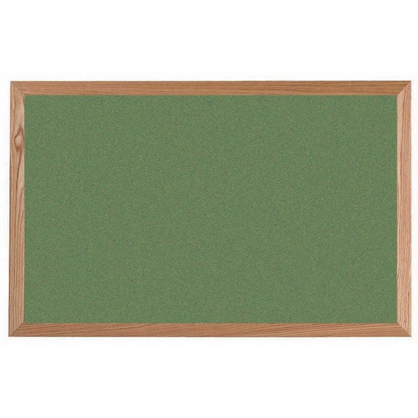 VIC Cork Bulletin Board, Red Oak Frame, Clear Lacquer Finish, Baby Lettuce 24''Hx36''W