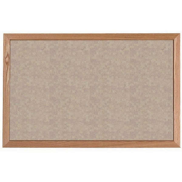 VIC Cork Bulletin Board, Red Oak Frame, Clear Lacquer Finish, Blanched Almond 24''Hx36''W