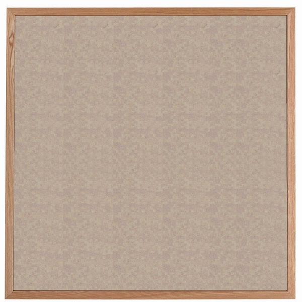 VIC Cork Bulletin Board, Red Oak Frame, Clear Lacquer Finish, Blanched Almond 48''Hx48''W