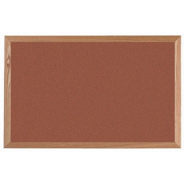 VIC Cork Bulletin Board, Red Oak Frame, Clear Lacquer Finish, Cinnamon Bark 24''Hx36''W