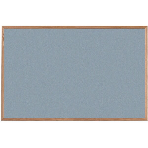 VIC Cork Bulletin Board, Red Oak Frame, Clear Lacquer Finish, Duck Egg Light Blue 48''Hx72''W