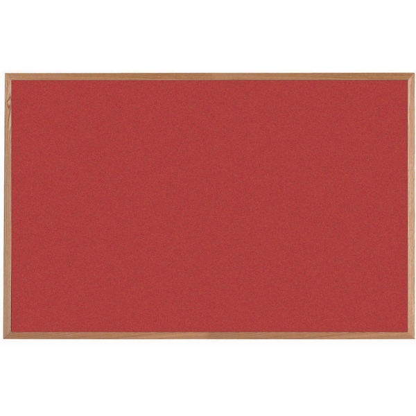 VIC Cork Bulletin Board, Red Oak Frame, Clear Lacquer Finish, Hot Salsa Red 48''Hx72''W