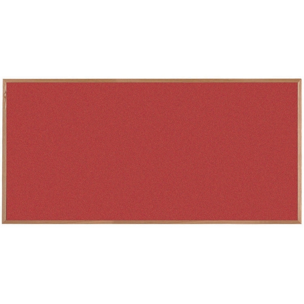 VIC Cork Bulletin Board, Red Oak Frame, Clear Lacquer Finish, Hot Salsa Red 48''Hx96''W