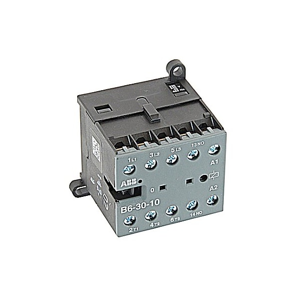 3 pole, plus 1 NO auxiliary contact, 12 amp, non-reversing miniature contactor, 220/240VAC coil and screw terminals