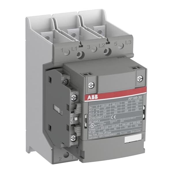 ABB CTR, 3P, 130A, 100-250VAC/DC is an IEC Magnetic Contactor. It is a three-pole switch with a coil that operates from 100-250 VAC/DC and includes one normally closed and one normally open auxiliary contact (1NC/1NO). The device uses bar-type electrical connections and measures 126 mm deep, 90 mm wide, and 150 mm high, with a net weight of 1.3 kg. It is rated for insulation voltage up to 1000 V. The device operates within specified frequency ranges; IP ratings indicate the degree of protection provided by enclosures. The device is tested to withstand impulse voltages up to 8 kV under specified test conditions.