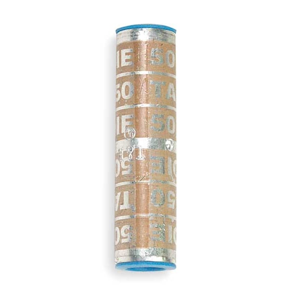 Long-Barrel Splice, Barrel Finish Tin Plated, Barrel Size Long, Color Code Tan, Die Code 50, For Conductor Material Aluminum, Copper, For Wire Type Stranded, Material Copper, Maximum Voltage 35 kV, Minimum Wire Size 1/0 AWG, Maximum Wire Size 1/0 AWG, Number of Crimps 2, Overall Length 2.38 in, Maximum Conductors 1, Maximum Operating Temperature 194 Degrees F, RoHS Compliant Yes, Seam Style Seamless, Standards CSA Certified, UL Listed, Barrel Outside Diameter 0.62 in