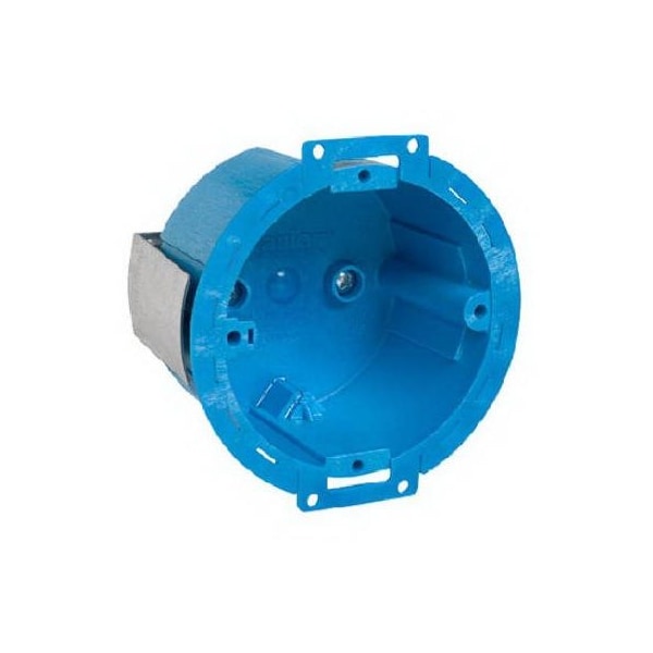 Super Blue Round Ceiling Box, 3, 14 CUIN Capacity, New Spring Clamp Design, Break Away Edges For Small Fixtures, Fixture Rating Of 10 LB, Rigid Box, Resists Flexing Holds It's Shape Even Under The Worst Conditions, Super Tough