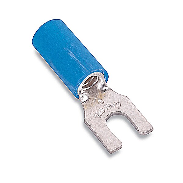 Fork Terminal, #8 Stud Size, 14 AWG, 600 V, Nylon Insulated, Blue, 1000 PK