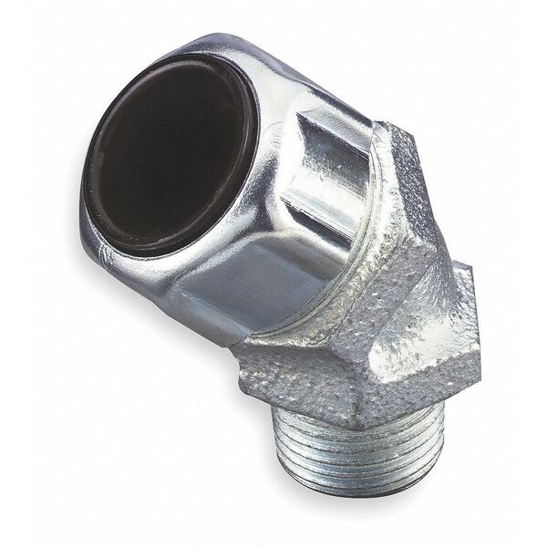 Liquid Tight Cord Connector, Cord Dia. Range 0.31 in to 0.56 in, Box Connection 1/2 in MNPT, Material - Cord Connector Malleable Iron, External Strain Relief Material No External Strain Relief, Number of Cords 1, Style - Connector 45 Degrees , Strain Relief Type No External Strain Relief, External Strain Relief Length No External Strain Relief, Insulated No, Standards UL E13938, CSA 52391, NEC 501-4(B)