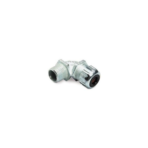 3/4in, 0.375 to 0.5in Cord, Malleable Iron, 90D, Liquidtight Strain Relief Cord Connector
