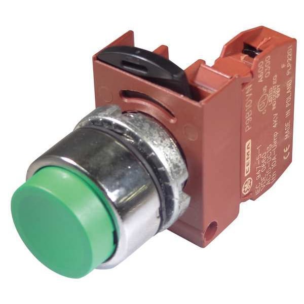 Extended Push Button Operator, 22 mm, Momentary Push Action, Extended Button Type of Operator, Head Material Metal, Contact Form 1NO, Bezel Polished Chrome, Color Green, Contact Rating 10A @ 600V AC, Number of Operators 1, NEMA Rating 1, 13, 3, 3R, 3S, 4, 4X 12, IP Rating IP66, Legend Not Applicable, Standards CE, CSA, UL Listed, Terminal Connection Pressure Plate, Material Metal