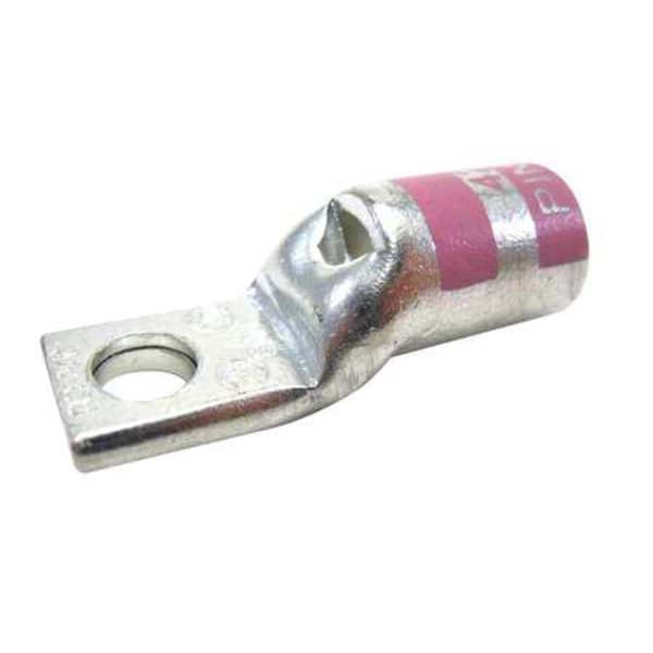 One-Hole Compression Lug, 1/0 AWG Max, 1/4 in Stud, Short Barrel, Copper, Pink